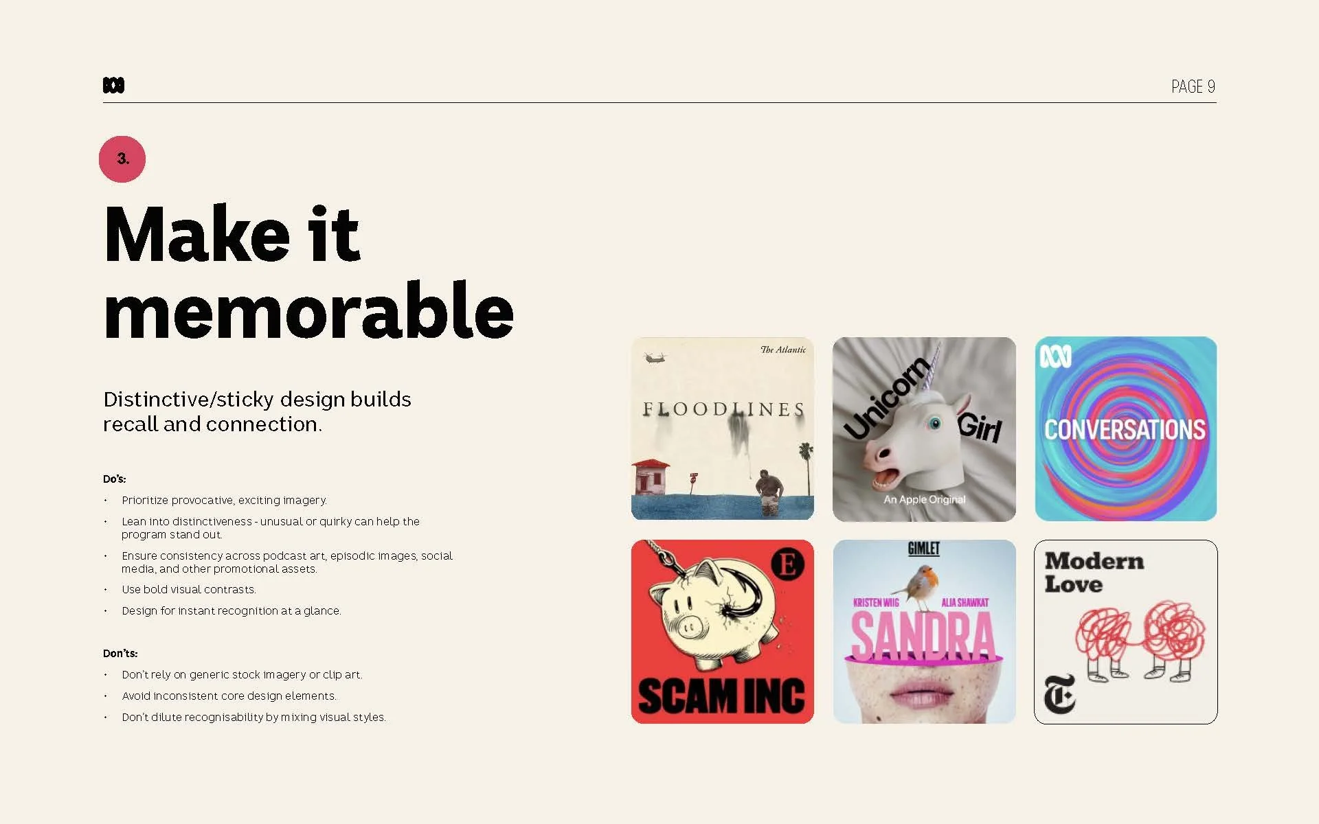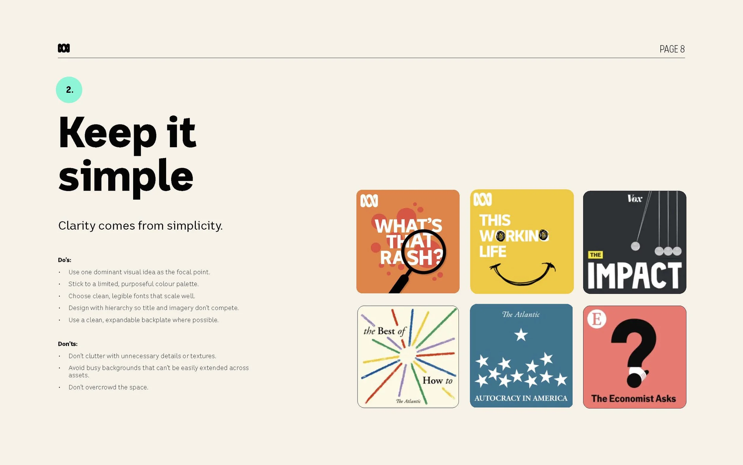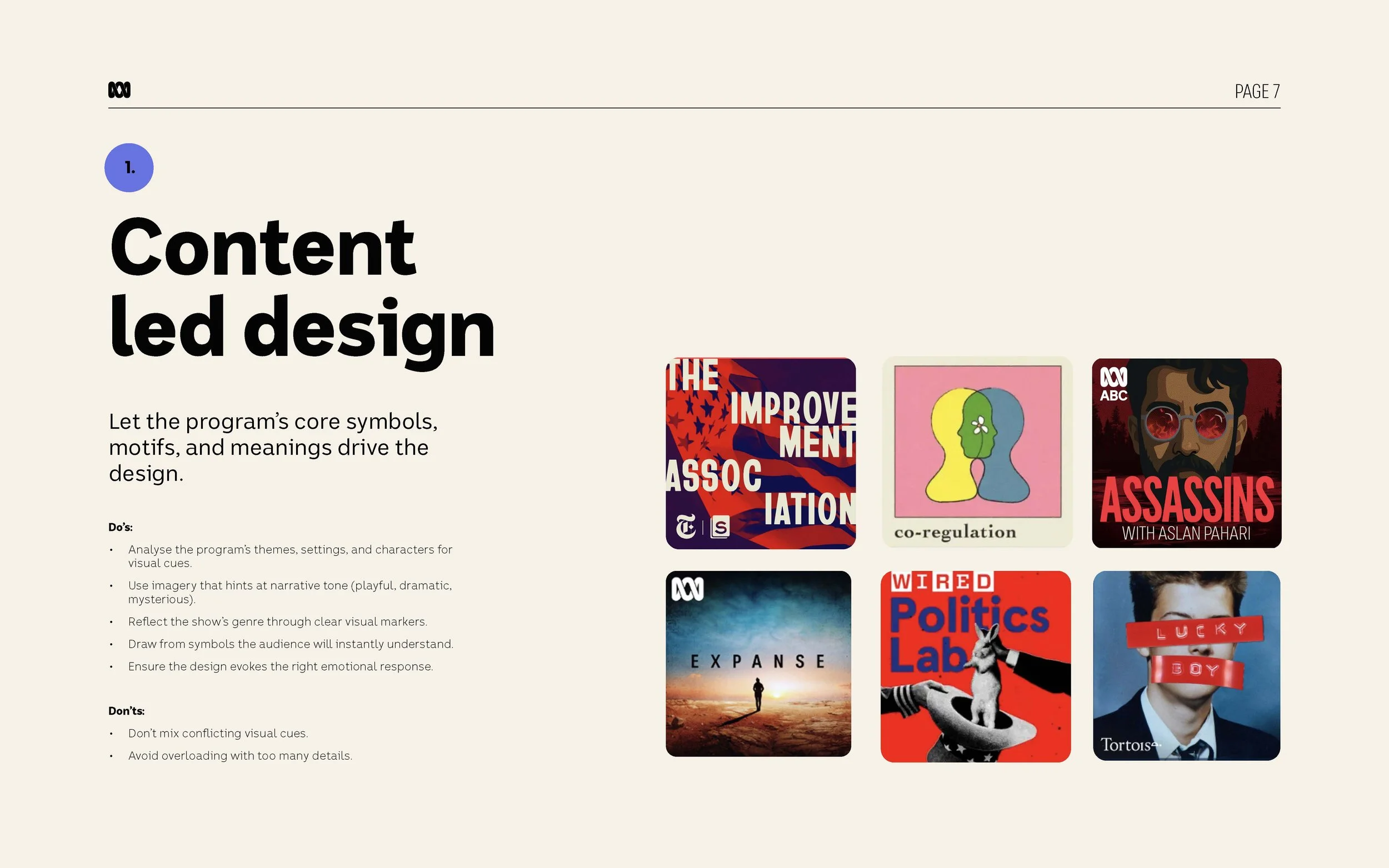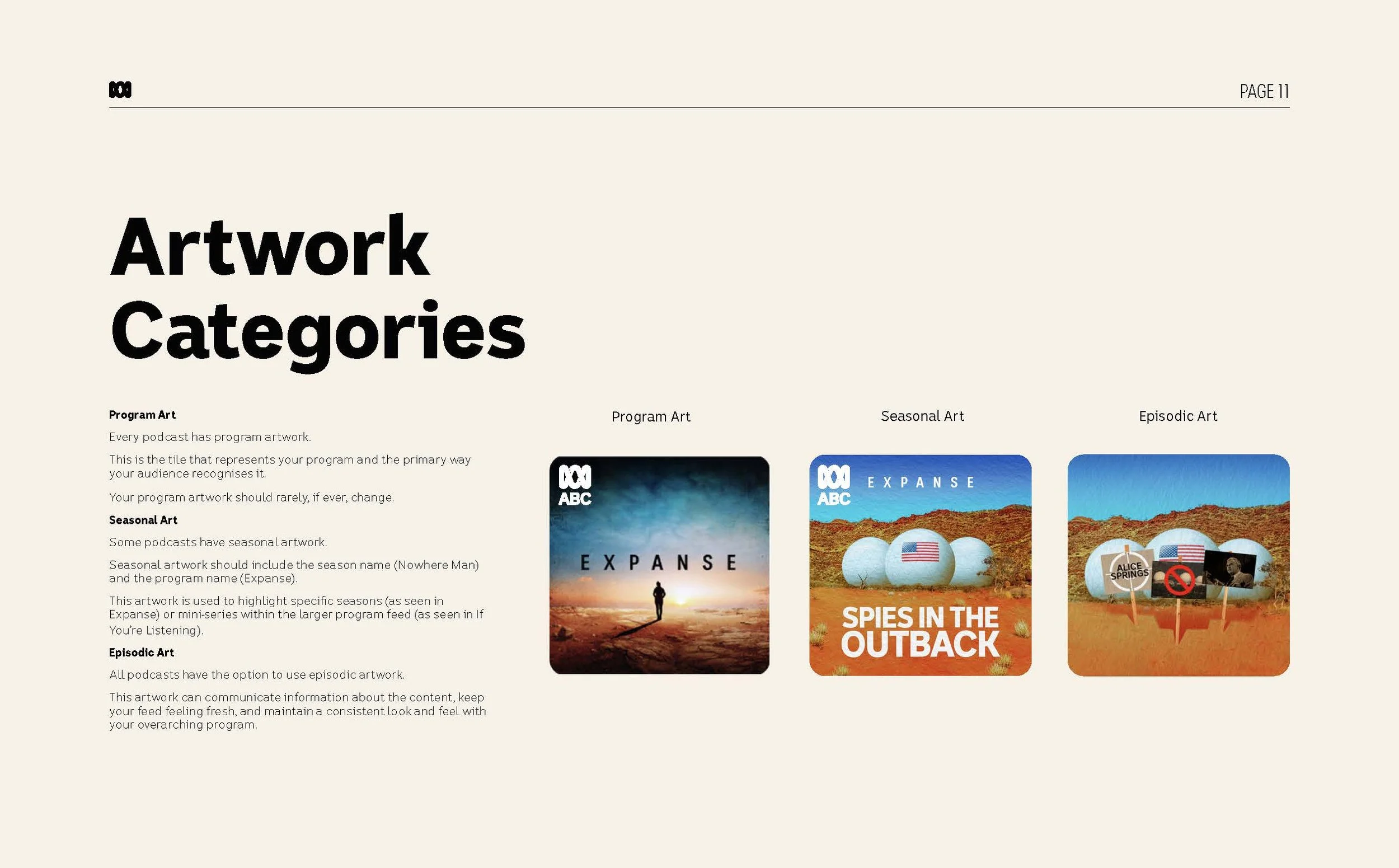 I led the redevelopment of the ABC podcast style guide from initial market research through to guideline development and final delivery, responding to the need for greater cut-through in an increasingly competitive podcast landscape.